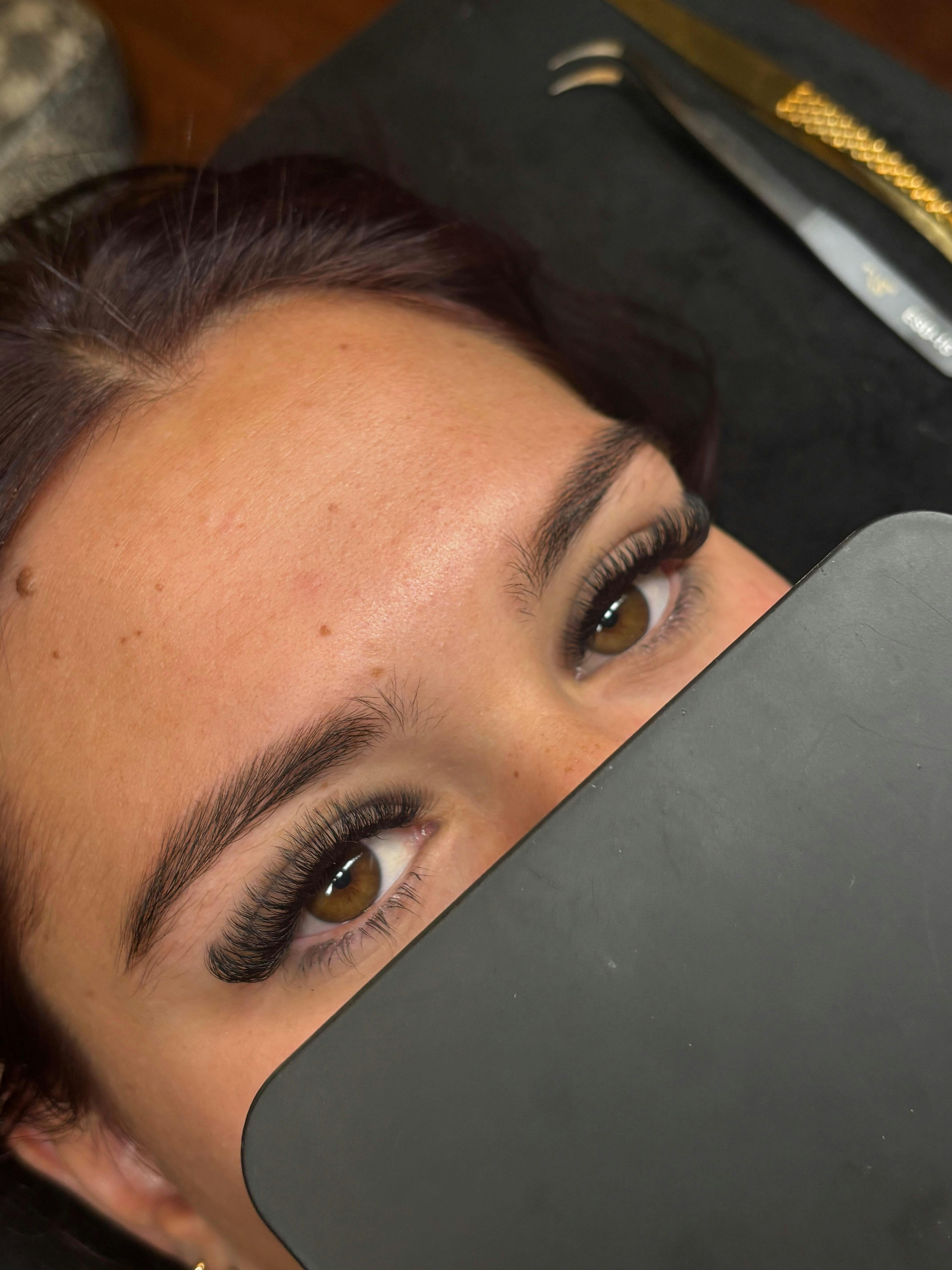- Ensure you use the right amount of glue. Too little will result in poor retention, too much can cause the lashes to stick to each other. Use a small bead of adhesive for classic lashes. When using premade lashes, dip only the bottom 2mm of the fan in the adhesive.