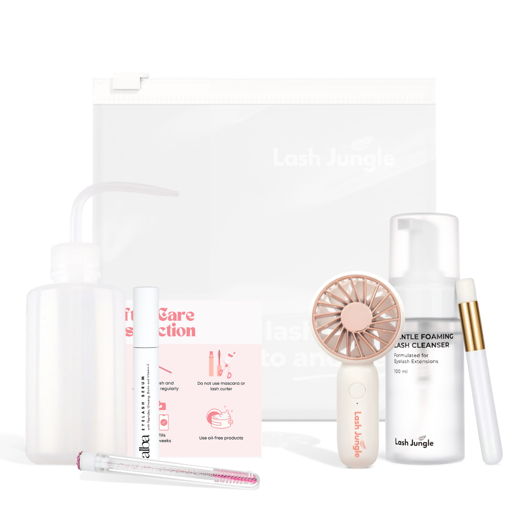 We recommend using a professional lash cleanser, like Lash Jungle Gentle Foaming Cleanser. It’s specially formulated for the delicate eye area and is safe to use with lash extensions. It removes makeup, oil, sweat, and residue—helping improve retention and supporting healthier lashes overall.